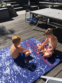 Den här veckan har grabbarna varit hemma igen och myst med pappa på dagtid (förutom i fredags då femåringen väldigt nöjd fick följa med till jobbet). Skönt att vara tillsammans igen. Vi har badat, pallat körsbär, sjuåringen har sovit över hos bästa vännen, spelat kubb, spelat kort och hängt i diverse parker.