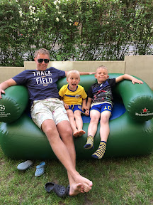Vi har haft ett ganska lugnt firande idag. Började med träning och sedan blev det lite snickeri av grabbarna. Dom bestämde sig för att göra ett bord...?! Avslutade Gustaf-dagen med en rulltårtsbakelse med massor av svenska jordgubbar!!! Visade sig att maken hade kommit två i en tävling på nätet och kom hemdragandes med en stor uppblåsbar soffa. Gissa vilka som var glada...